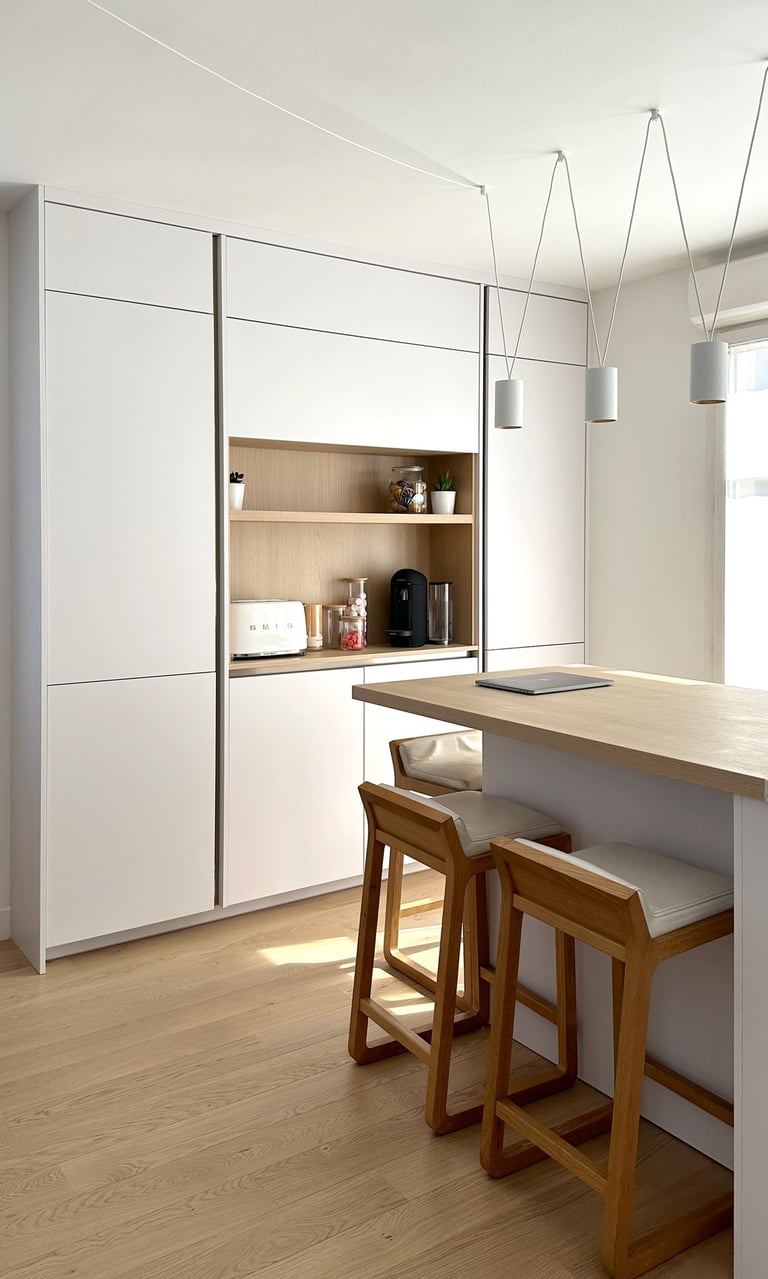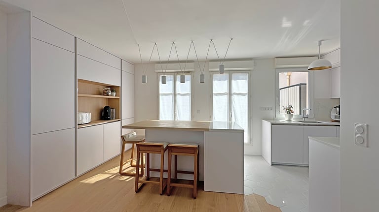 Ce beau duplex de 90 m², situé au Plessis-Robinson, a fait l’objet d’un projet d’aménagement sur mesure, visant à optimiser les volumes et à créer des espaces de vie à la fois fonctionnels, chaleureux et lumineux.