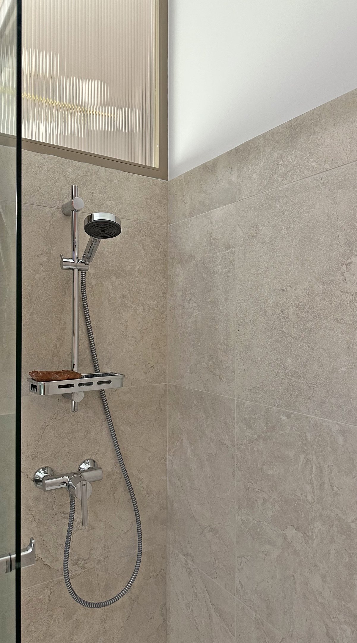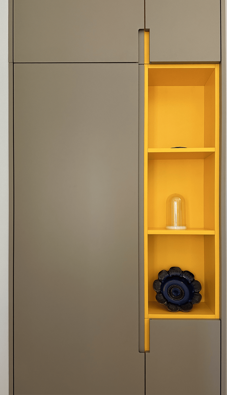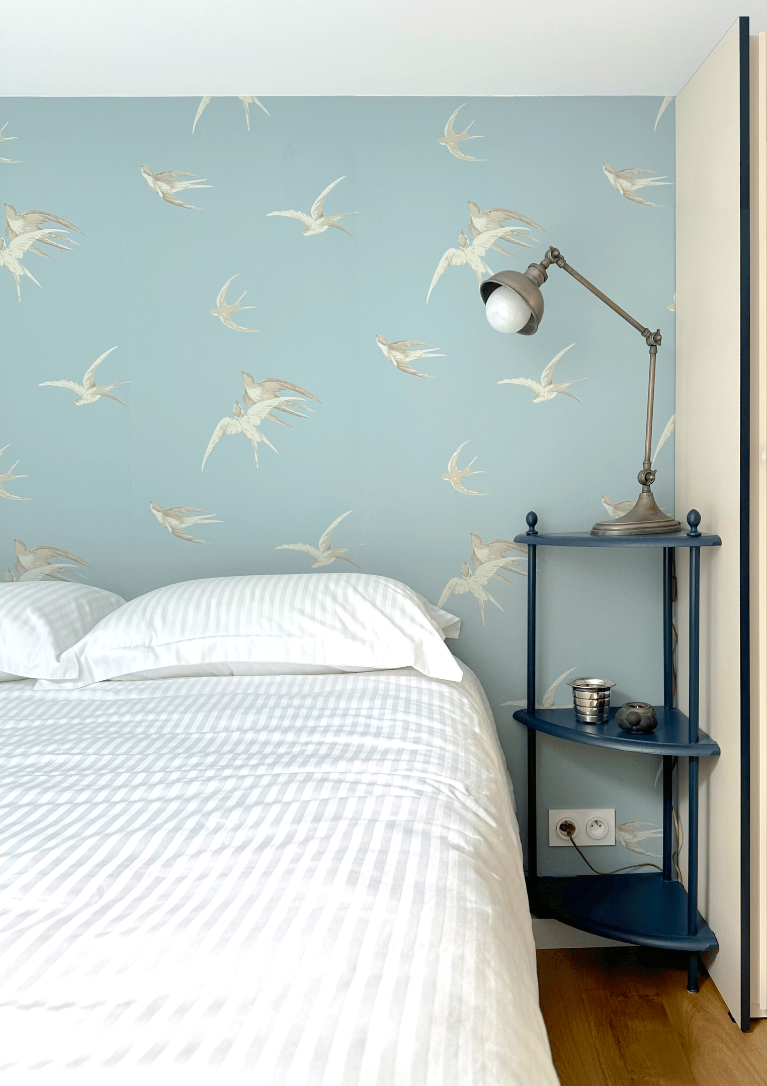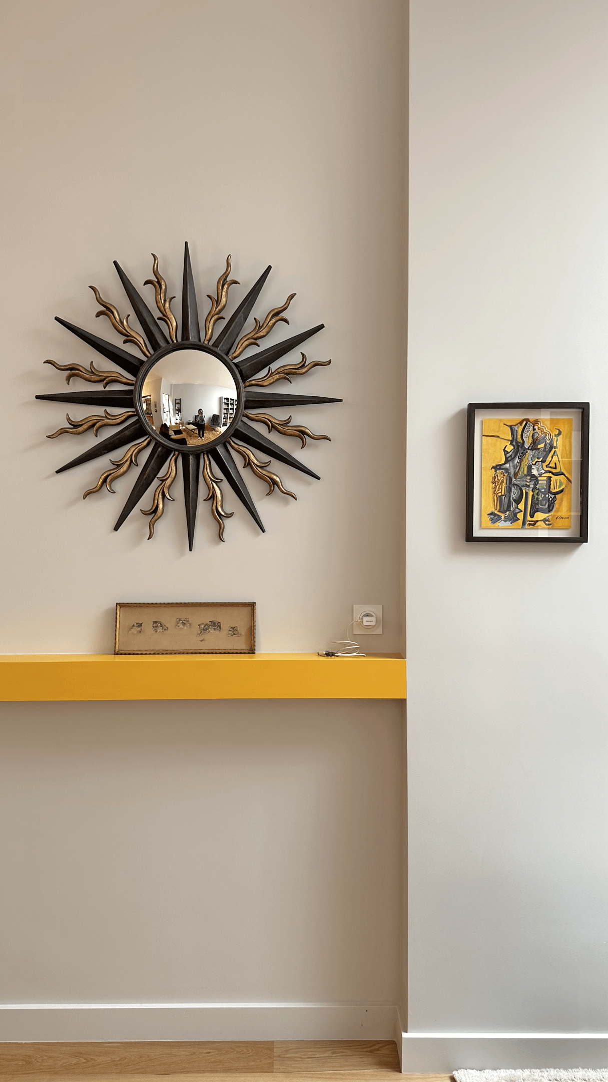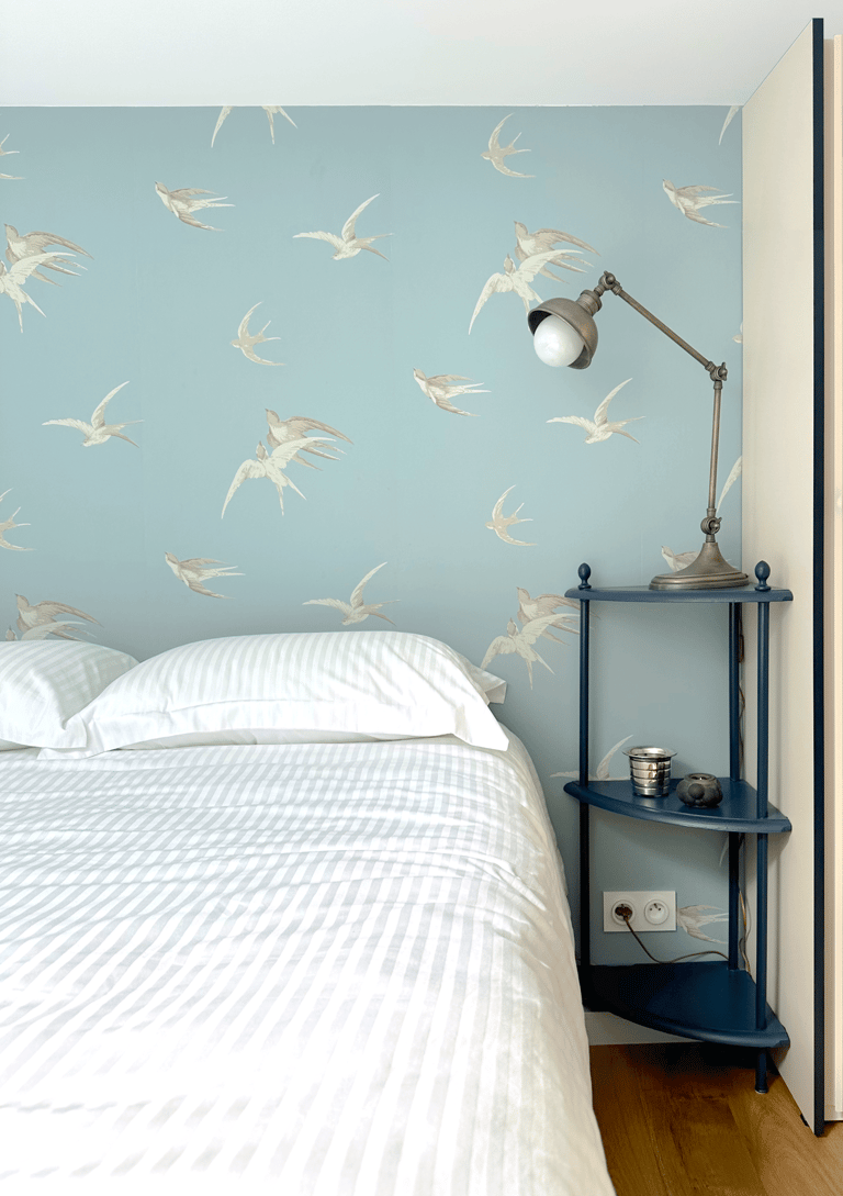 La propriétaire, Catherine, ne profitait pas de l’espace sous verrière, situé en bout de loft. L’agencement intérieur a été entièrement repensé. Le bureau, initialement situé à l’entrée, a été déplacé à l’arrière du loft, dans un espace baigné de lumière et ouvert sur le jardin. L’ancienne chambre attenante à l’entrée bénéficie désormais d’une salle d’eau privative, offrant plus de confort et d’intimité.