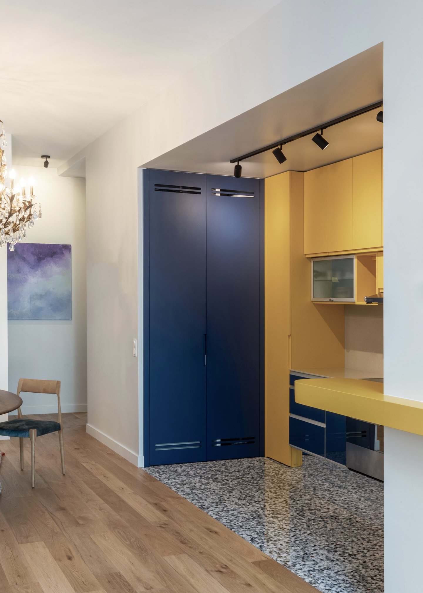 La cuisine, quant à elle, a été déplacée dans l’ancien espace technique – auparavant occupé par la salle de bain et la buanderie – pour s’ouvrir sur le jardin d’hiver et profiter pleinement de sa lumière naturelle.