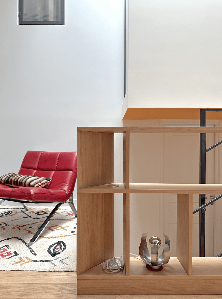 L’un des plus beaux défis de ce projet a été de composer avec les différents niveaux de sol et d’harmoniser le mobilier existant avec un nouvel agencement conçu sur mesure.
