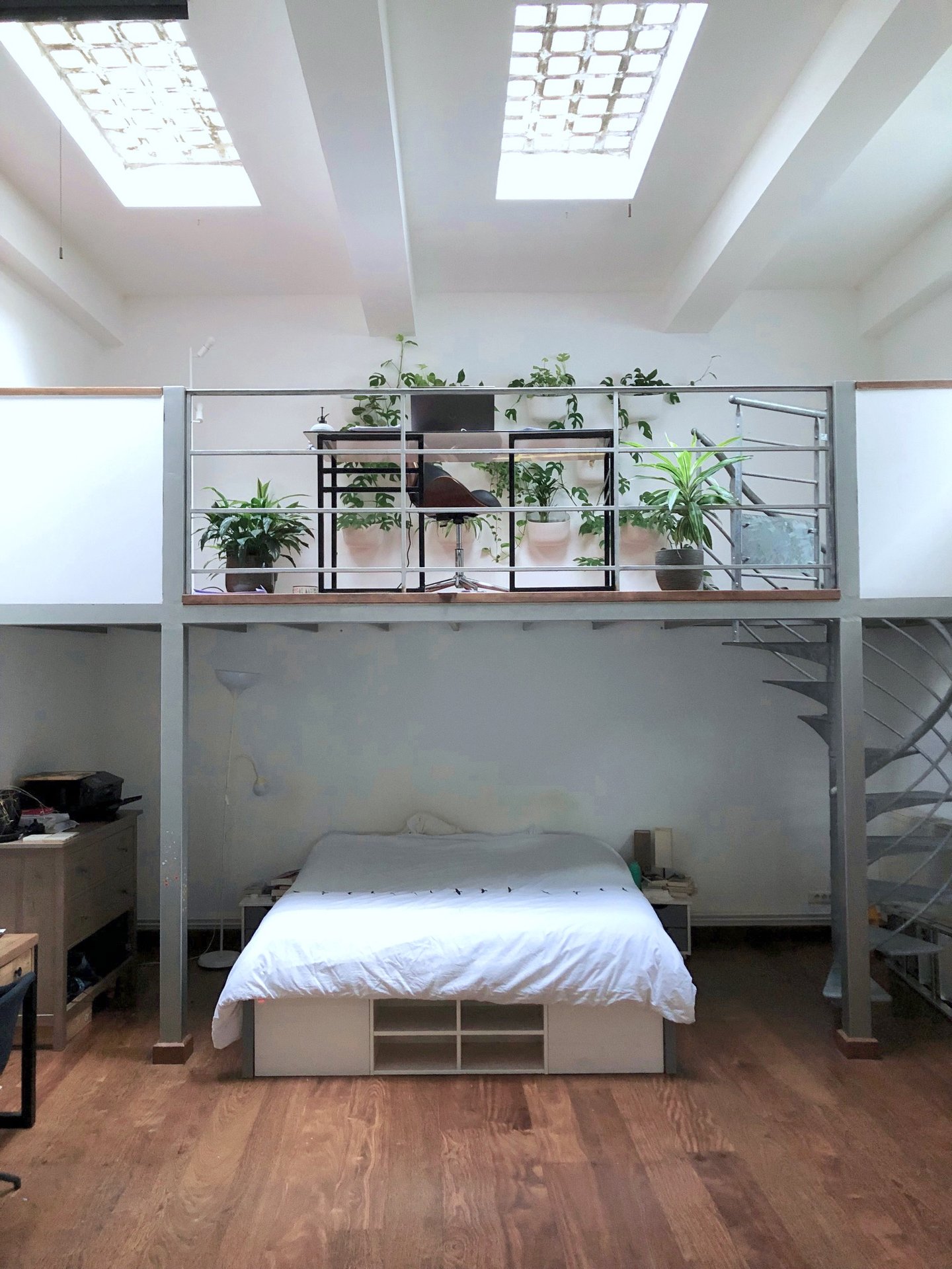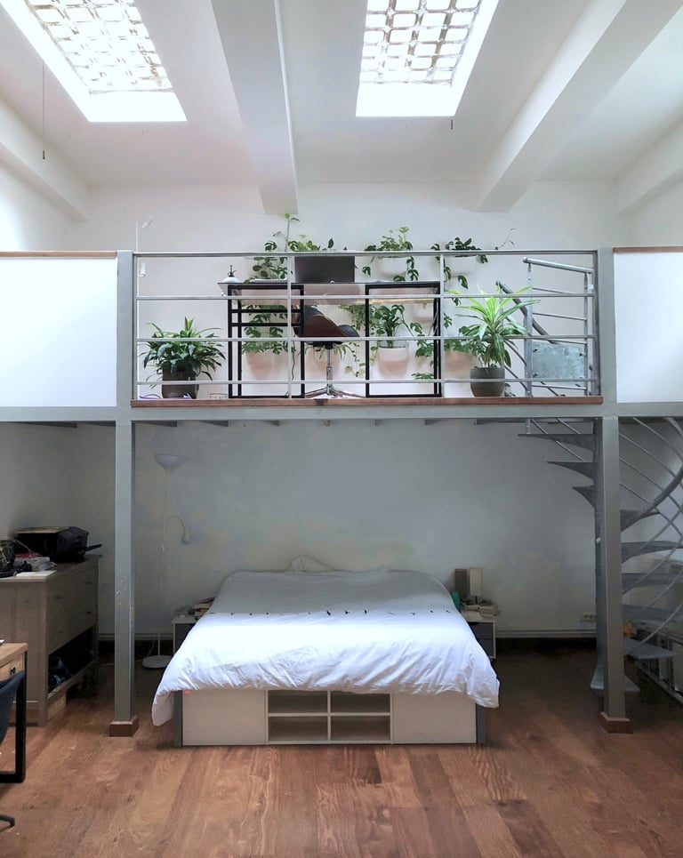Aujourd’hui, Max et Deb profitent pleinement de leurs nouveaux espaces de vie : un bureau préservé et fonctionnel en mezzanine, et une chambre cocooning, pensée comme un écrin intime au cœur de leur loft.