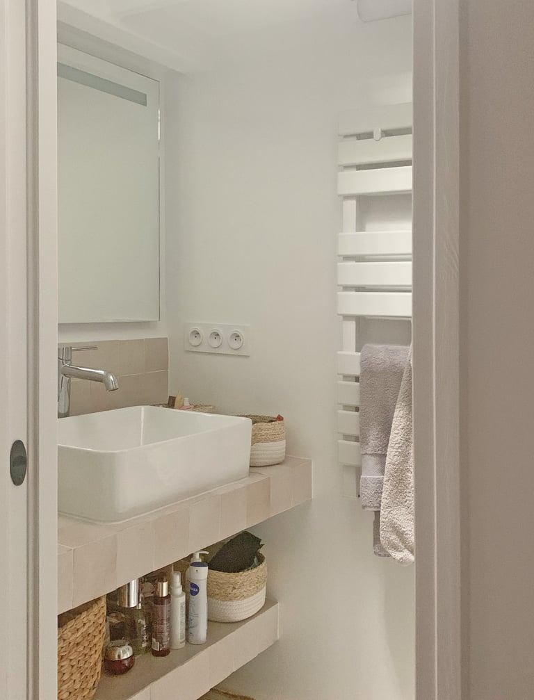 Grâce à une hauteur sous plafond de 4,50 m, la structure porteuse de la mezzanine existante a été conservée, permettant de redéfinir l’espace nuit sans compromettre la fluidité des volumes. Ce généreux espace a été travaillé avec finesse afin de préserver la sensation d’ouverture tout en apportant une intimité essentielle.